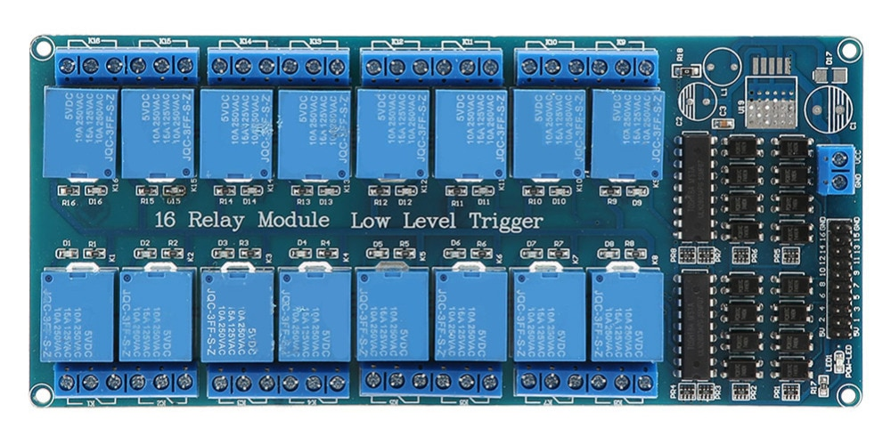 Example connection to a 16 bit relay board: