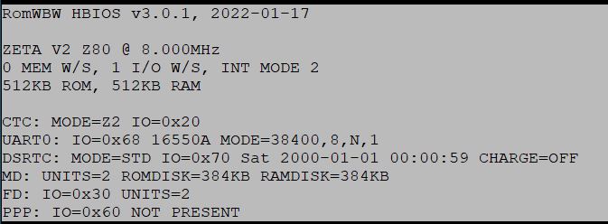 Firmware: RomWBW3.0.1 (for Zeta V2)